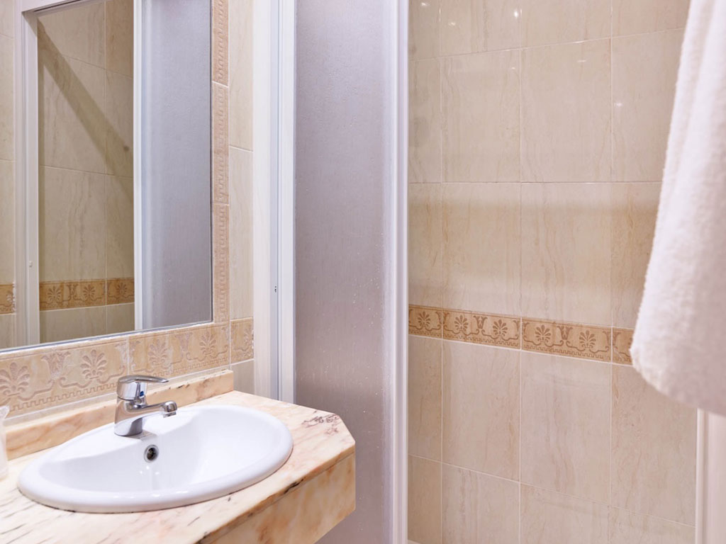 Cuenta con una cama doble y una cama supletoria, ideal para quienes buscan una habitación doble con supletoria en Madrid centro. También dispone de baño privado con ducha, aire acondicionado, calefacción, Wi-Fi gratuito y todo lo necesario para que tu estancia sea práctica y confortable.